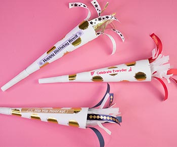 Add custom labels and ribbons to your very own DIY party poppers.