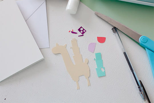 Print an outline of your favorite llama image. If you have a die cut or paper cutting machine, select a llama image and cut using the assorted card stocks. Cut out the printed llama. Trace the outline on a tan cardstock. Cut out the image.
