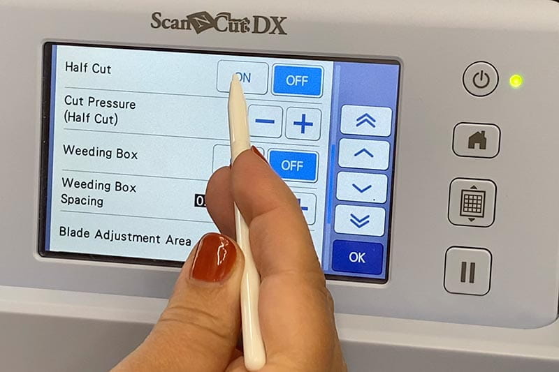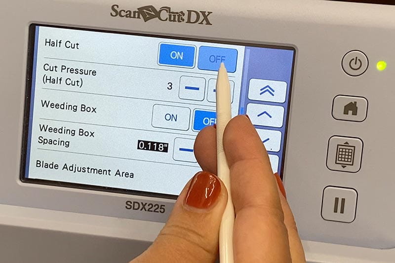 FOUR: Don't forget to turn the Half Cut function off when you're ready to cut materials other than vinyl. If you leave it on, your materials won't cut all the way through.