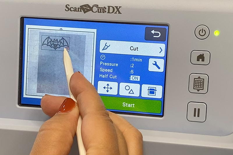 TWO: Whenever you cut vinyl (heat transfer or adhesive backed) you want to use the Half Cut function on your ScanNCut DX machine. This instructs the machine to only cut through "half" of the material. This leaves the carrier sheet intact, which maintains the integrity of the design.