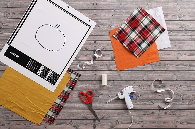 2. Scan in your desired pumpkin design into the SDX125E. Once your design is scanned, place your fabric on the mat and cut the pumpkin design out (for extra stiffness while cutting spray with starch.).