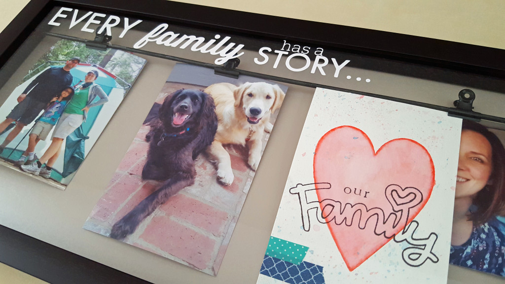 Here’s a great home decor project I want to share with you. I found these neat frames when I was out shopping and thought how fun they would be to use at home or in my art studio since they have little clips you can hang photos or artwork on. The frames are great on their own but I thought it would be cool to jazz them up a bit by cutting a warm cuddly phrase out of craft vinyl and applying it to the glass.