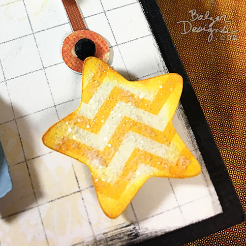 I frosted the stars with glitter glue and I added some black rhinestones. I also personalized the card with some text: