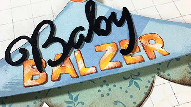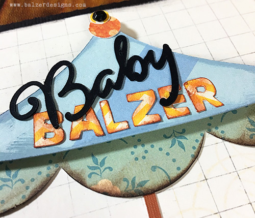 The "Baby" is a built-in design in my ScanNCut and the "Balzer" was created with one of the built-in fonts. You may also notice that I used colored ink pads to ink the edges of most of the pieces of paper. I think inking adds a lot of dimension to paper crafts. I also added actual dimension: