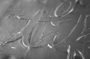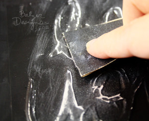 STEP FIVE: Once the paint is dry, sand it. Where the chipboard is underneath, the foil is raised and you will remove the paint when you sand it.