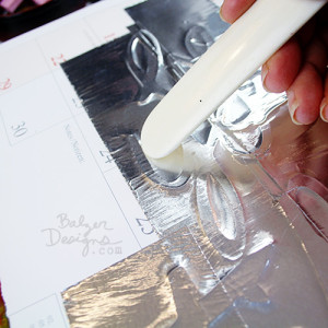 STEP FOUR: Paint over the top of the foil and allow the paint to dry. I used black gesso, but you could use any acrylic paint.
