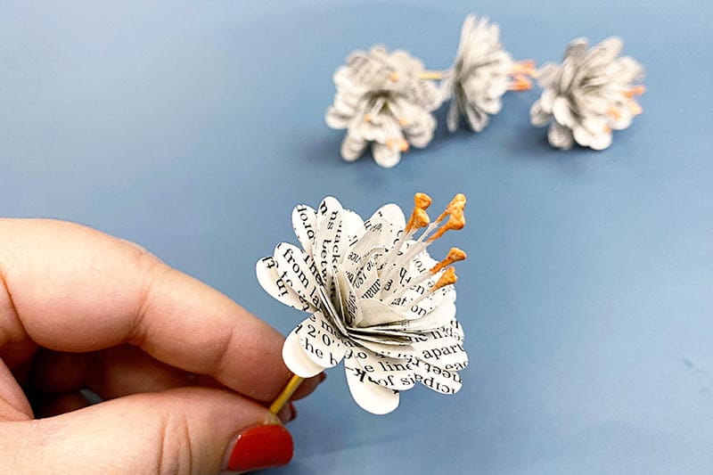 If you need video instructions for these flowers, I did a tutorial on How To Make Paper Flowers from Book Pages on YouTube.