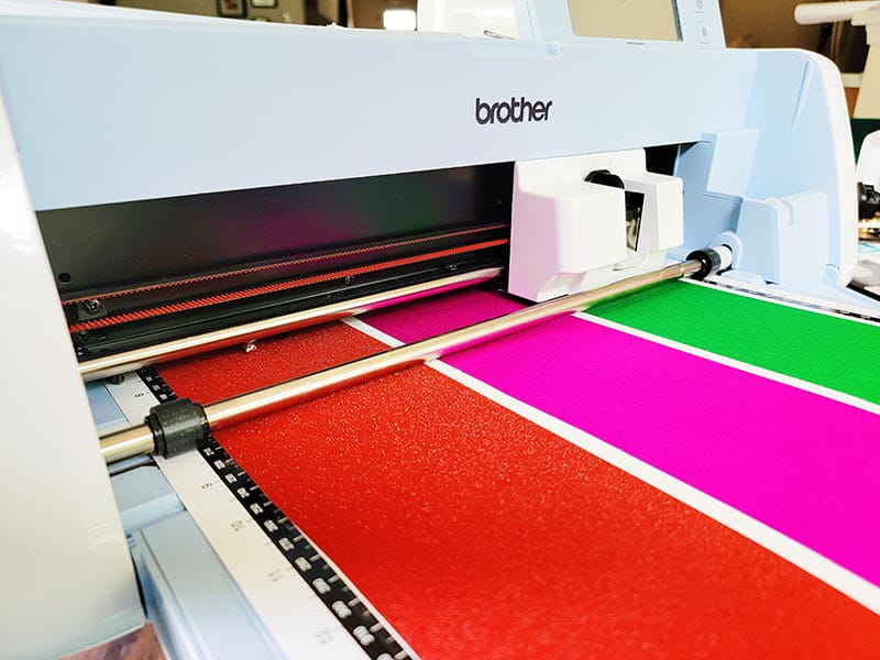2. Take 4 colors of your choosing and lay it on to your Brother ScanNCut cutting mat making sure that 14.5 inches of vinyl is attached.