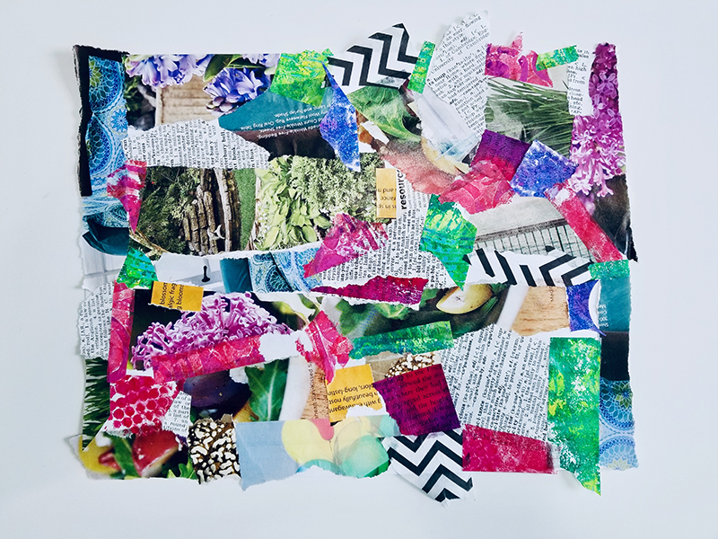 9. Cover a piece of printer paper with scraps of paper, fabric or magazines and allow to dry.