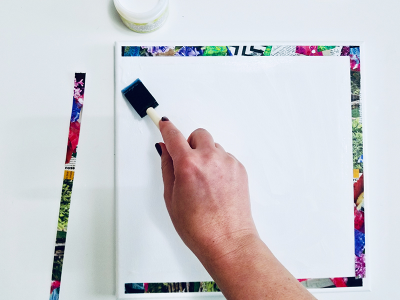 11. Use gel medium to adhere the strips along the edge of the canvas about ¼” from the edge.