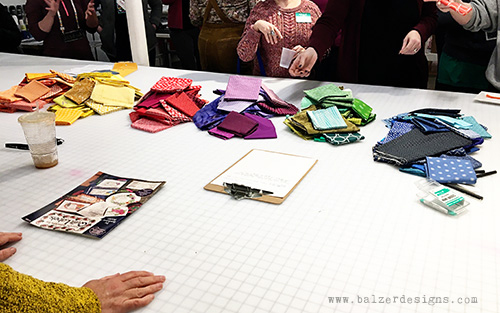 ...and then through a complicated series of swaps, we each ended up with a pile of 6 fabrics -- but not all of the colors. This was mine: