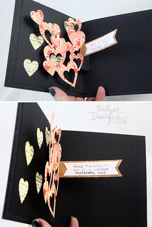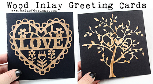 You can see this technique in this video using two different colors of wood veneer. For my cards, I used cardstock and wood veneer. I love the look you get from embedding or inlaying the veneer rather than gluing it on top of the card front and the ScanNCut makes it so easy to do! The heart card opens in a few different directions: