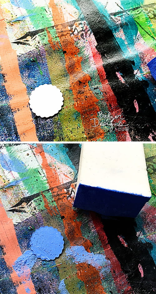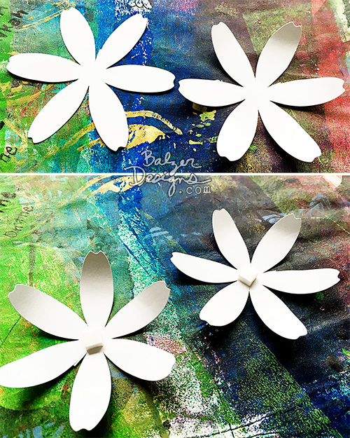 While I wanted the flower pieces to be white, I also wanted some contrast, so I painted the center bit with a cosmetic wedge sponge.