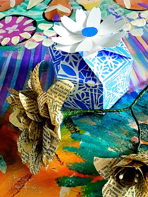 This box file is awesome because it’s all perforated for you! I simply folded on the perforation lines and brought the “petal” pieces together.