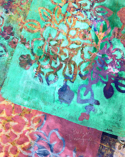 I love to create personalized fabric! My favorite method is gelatin printing. I used a Tattered Lace design to create a stencil to decorate my fabric. The Tattered Lace design is the flowered portion of this fabric: