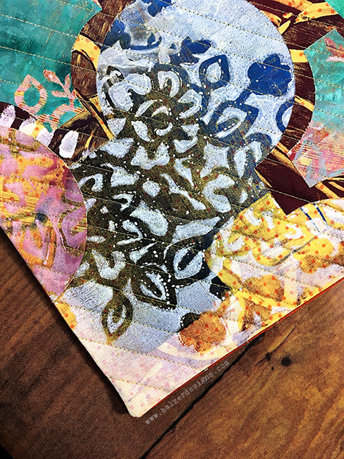 I combined that fabric with some other hand printed fabric to create this kind of crazy and cool quilt: