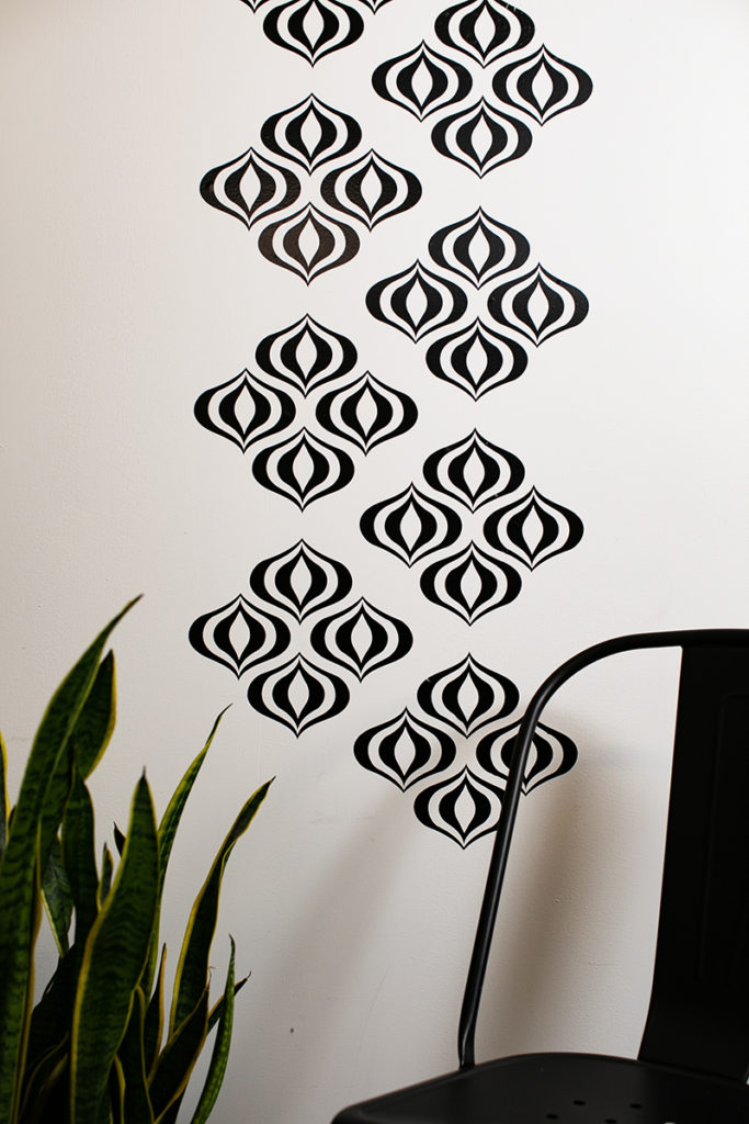 9. Peel off the transfer sheet, leaving the vinyl design adhered to the wall.
