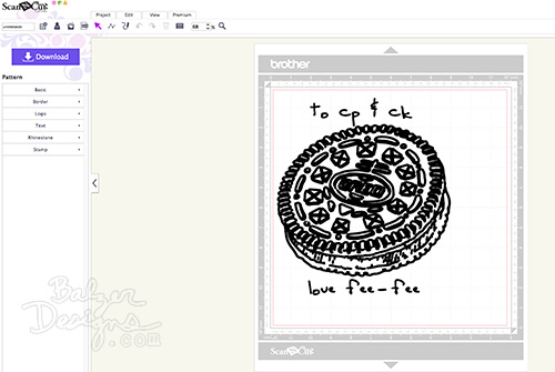 I brought the Oreo image into ScanNCutCanvas to change it over to a cutting file and I added text.