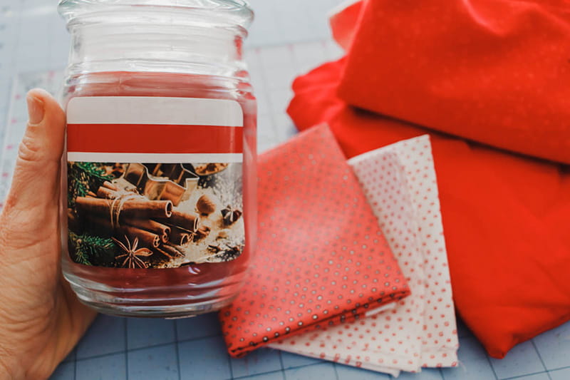 I love jar candles and I’m guilty of buying too many of them. When I buy a bunch for a holiday it seems strange to keep them out after the holiday is over even if I still love the candle. Many years ago, I decided I could give the candles new life by covering the holiday design with cute fabric by sewing quilted candle cozies. I’m excited to share the tutorial with you today.