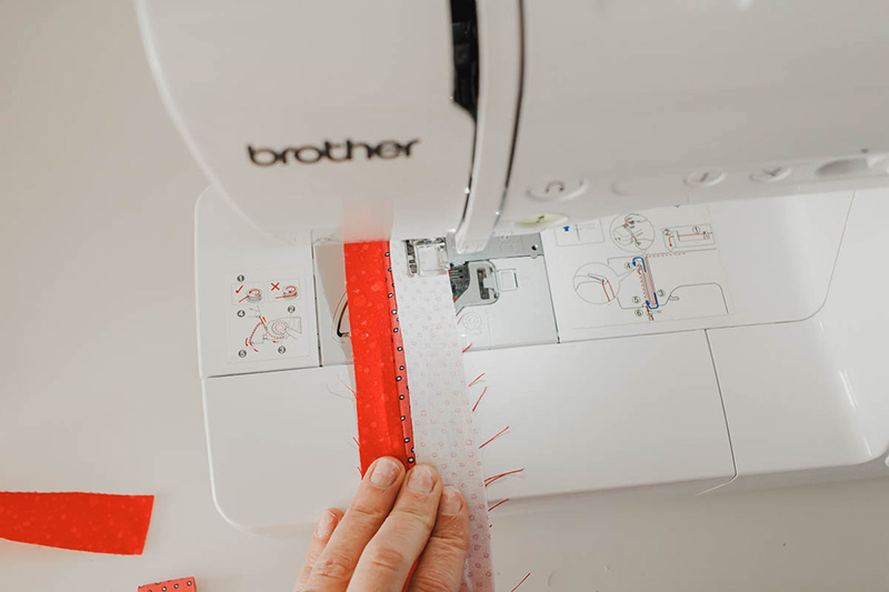 Press and decide on final design at this point. You can have the stripes going the long way or cut the fabric to height and turn the stripes up and down. If using the short stripes, you will need to sew the sections of stripes together. Press again.