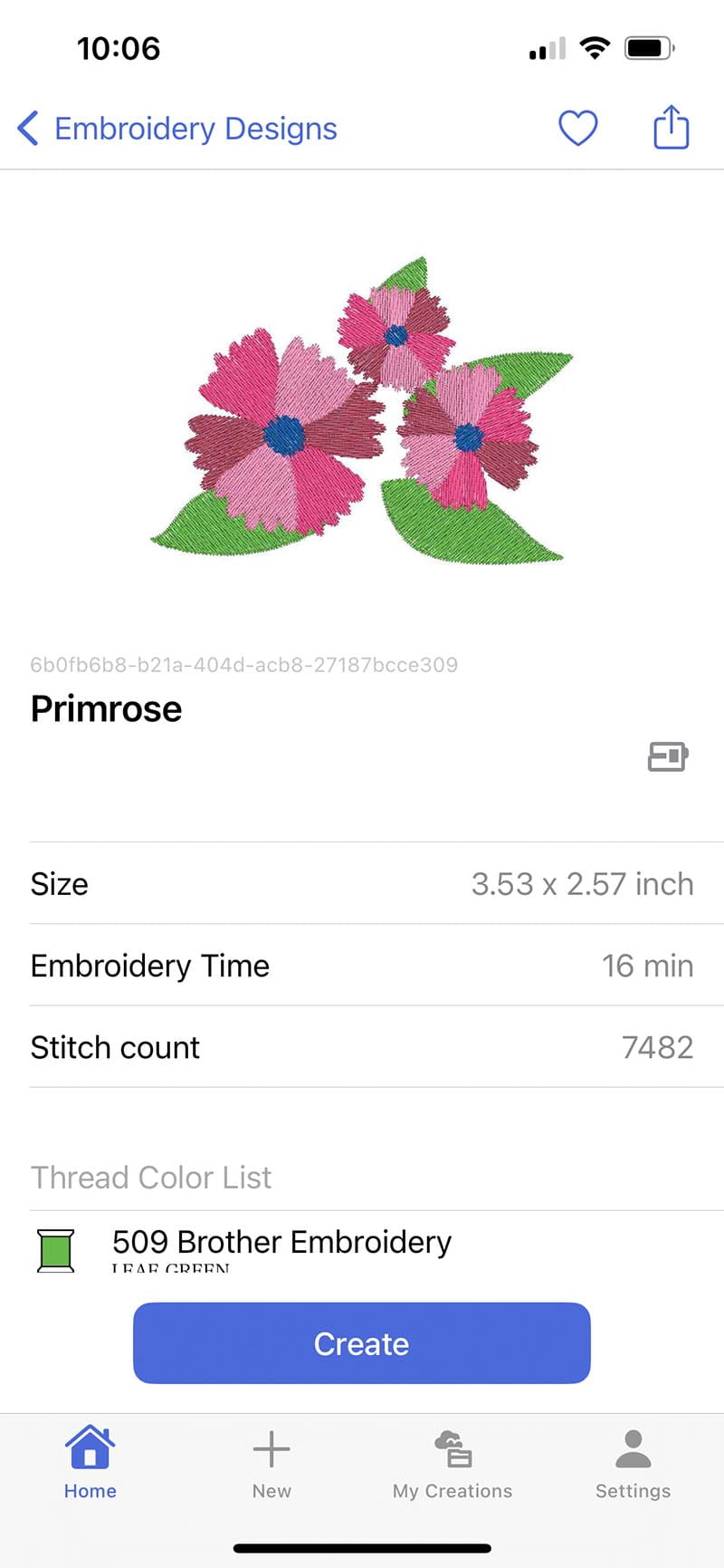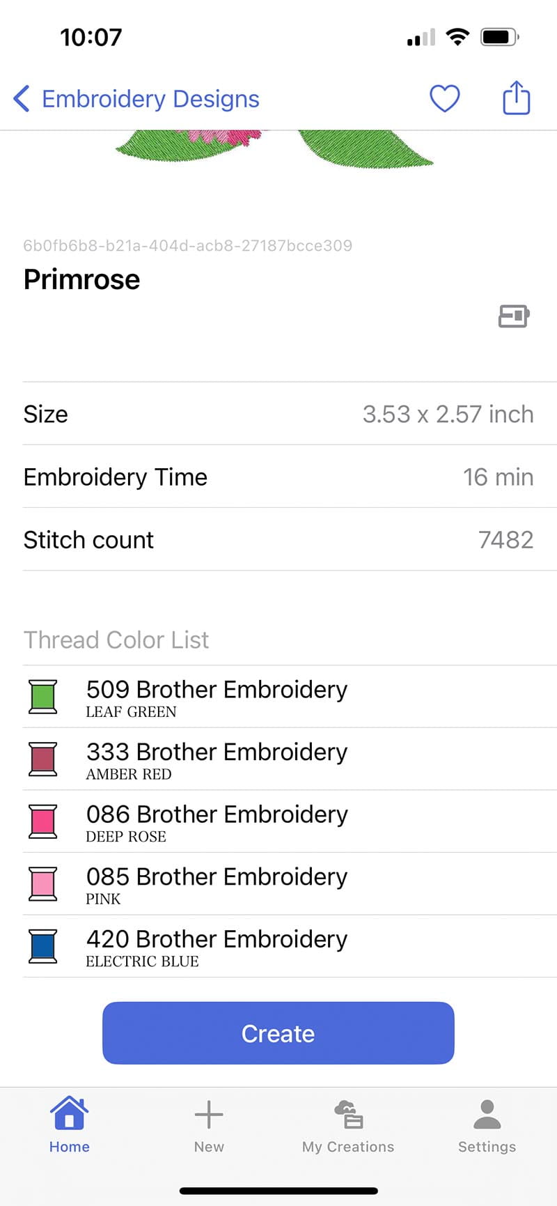 Wirelessly transfer the design to your machine by pushing the create button. After that, make sure the machine you want to use is selected and the final step is to push the transfer button.