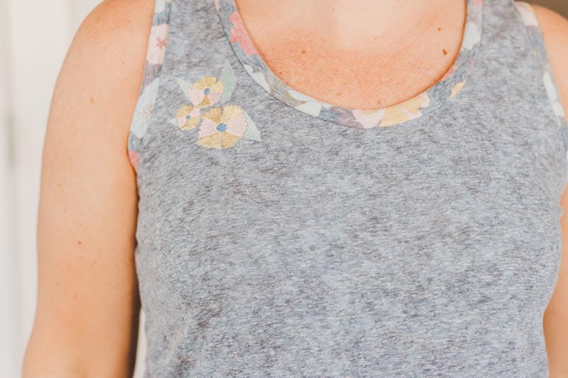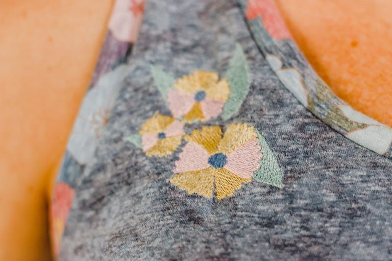 The embroidery in the front is so cute too! I thought about adding more, but I wanted to keep it simple for this cute tank. There are so many ways to use the Artspira flower designs when sewing clothes this summer. Add flowers down a sleeve, cluster on a skirt, and so many more uses for these floral designs.
