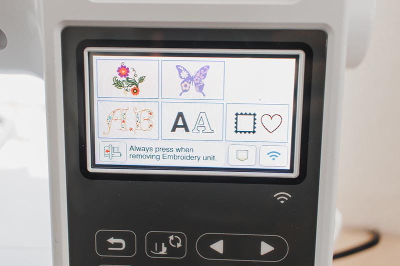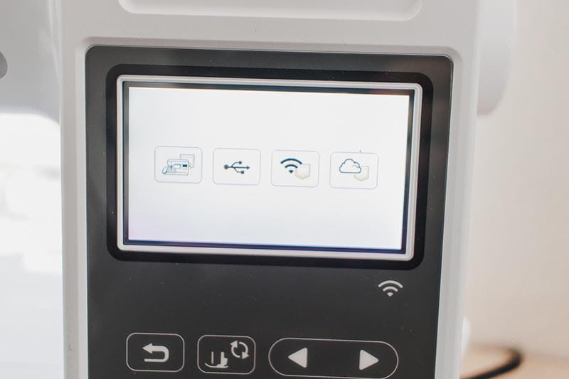 Over on your embroidery machine you will then push the pocket button on the homepage to retrieve your design, then on the next screen push the pocket/cloud button. This is where you will find designs transferred from the Artspira App.