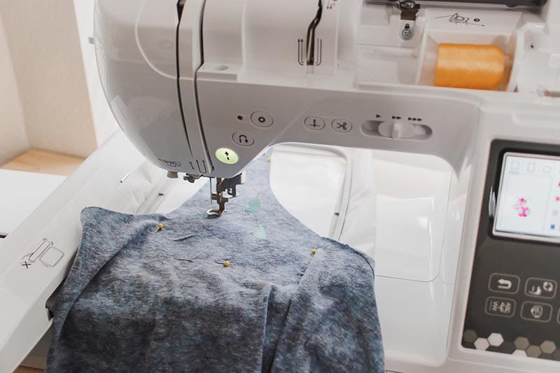 I was so pleased with how the embroidery turned out. With knit fabric you need to be careful when tearing away from the stabilizer so you don’t distort or tear the fabric. I was able to pull the stabilizer away and then clip the jump threads to clean up the design.
