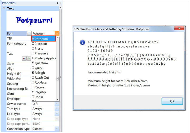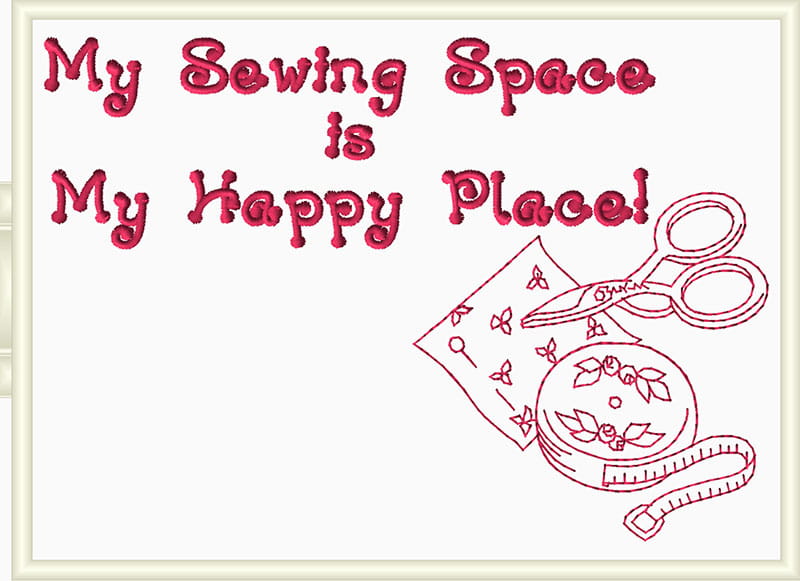 - Create a combination design adding lettering to redwork sewing design. You can use lettering built into your machine or create the design in software. I used the Brother BES Blue software and font style Potpourri to create a combination design to fit a 5-inch X 7-inch hoop. See Figure #5a and Figure #5b.