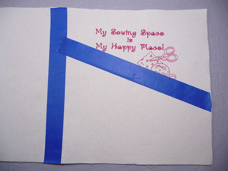 - Mark off front area of cover, along with the area just below embroidery.