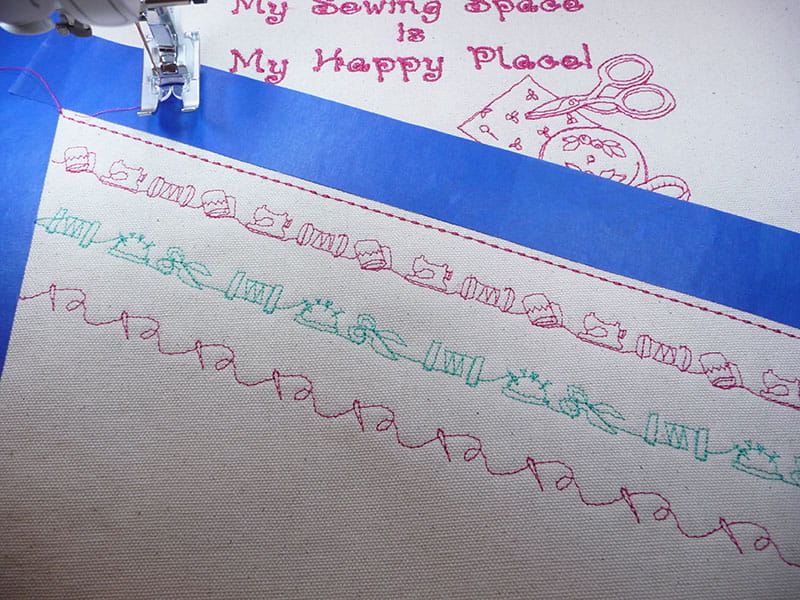 - Set up machine for sewing decorative stitches, using a bobbin to match your decorative thread. Sew desired rows of decorative stitches.