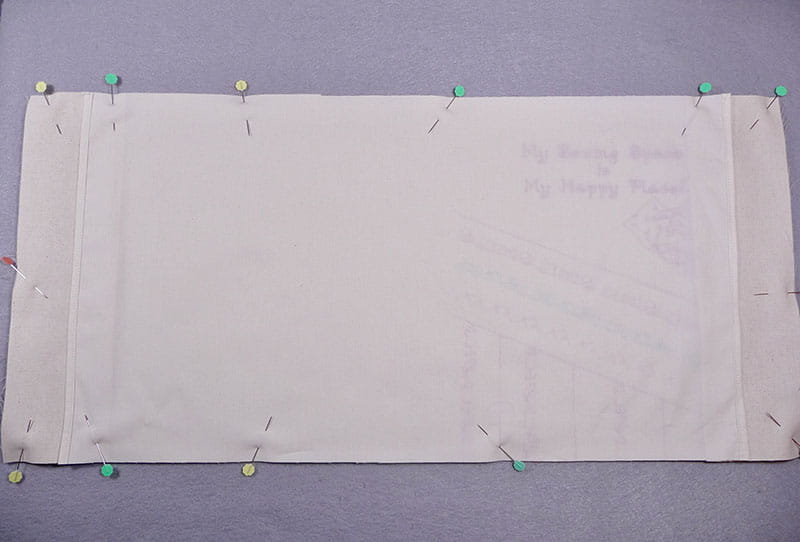 - Cut lining piece using the same measurement for height and subtracting 3-inches for the width.