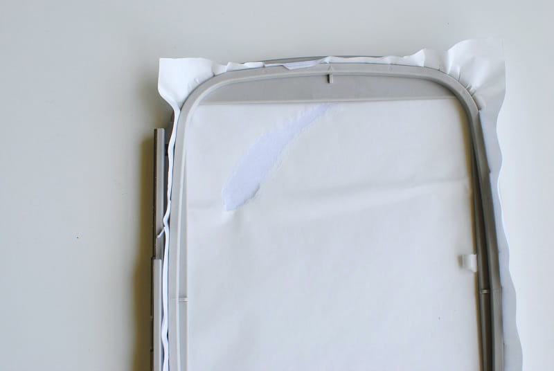 - Hoop Pacesetter Medium Tear-Away Stabilizer so the adhesive side will be up once you remove the top layer.