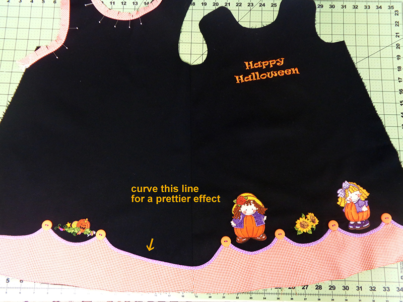 - Embroider Happy Halloween below neckline.