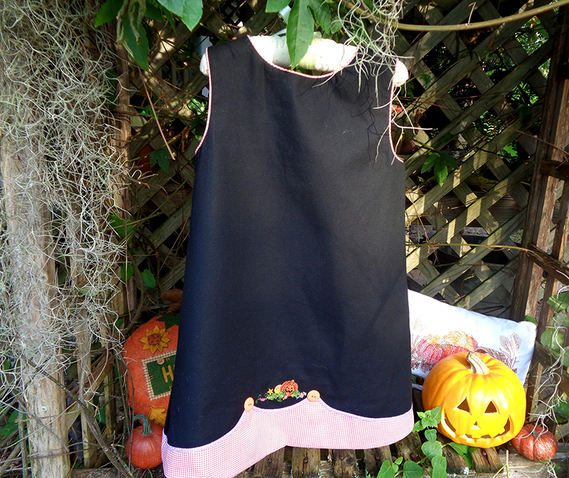 One garment for two fall holidays! This easy reversible A-line jumper features Halloween designs on one side and Thanksgiving on the other.The easy lining/reversing technique requires only 4” of handsewing. This might be one of your favorite patterns!