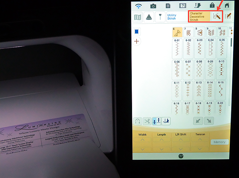 Below you’ll see what candlewicking stitches look like. You’ll find them in many different Brother machine models. Check your machine menu to see if any of these stitches are included in your decorative stitch menu. I like to think that these stitches resemble stars, flower buds, pearls, or even snowflakes! These raised stitches come in different sizes and configurations. See Figure #2 for an example of candlewicking stitches built-in to the Brother XP1 Luminaire.