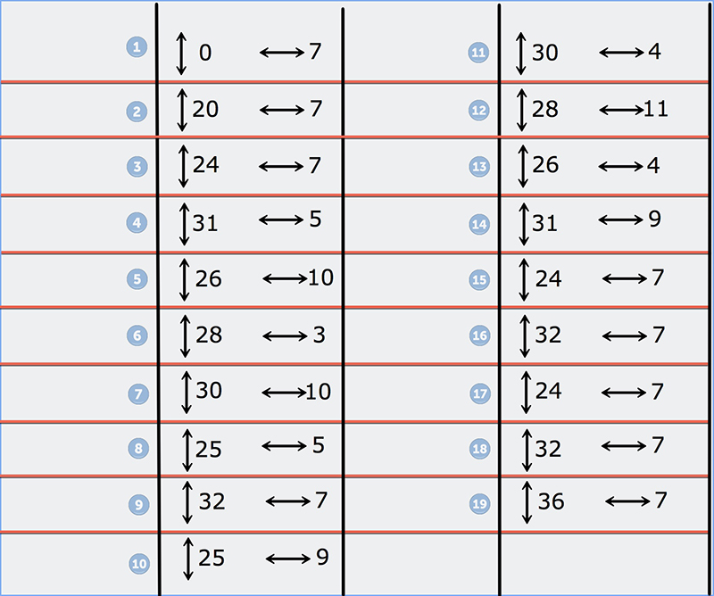 For reference, Figure #6a shows the first set of stitch coordinates and Figure #6b shows the last set of stitch coordinates. Look at the chart and you’ll see that these match the numbered steps.