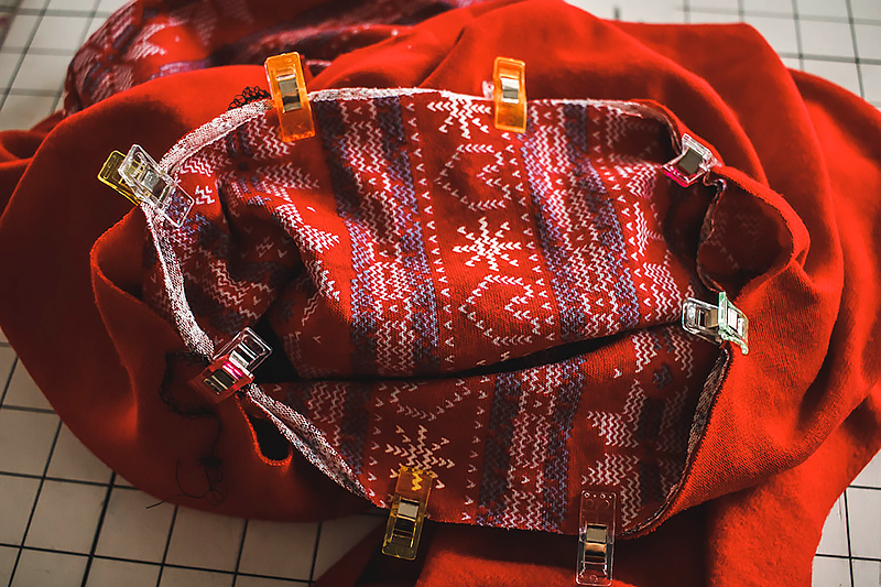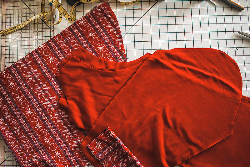 - Beautiful Fabric to sew your sweater - the shirt and cowl should be made with knit fabric.