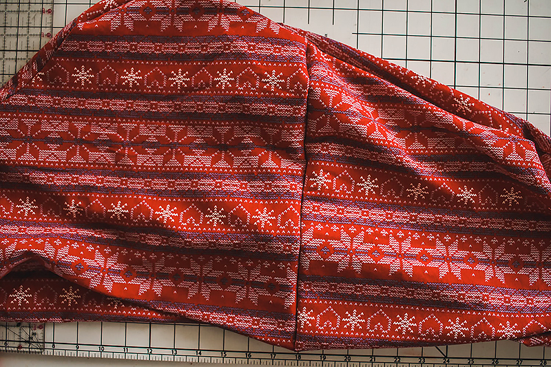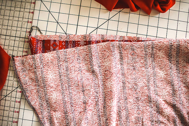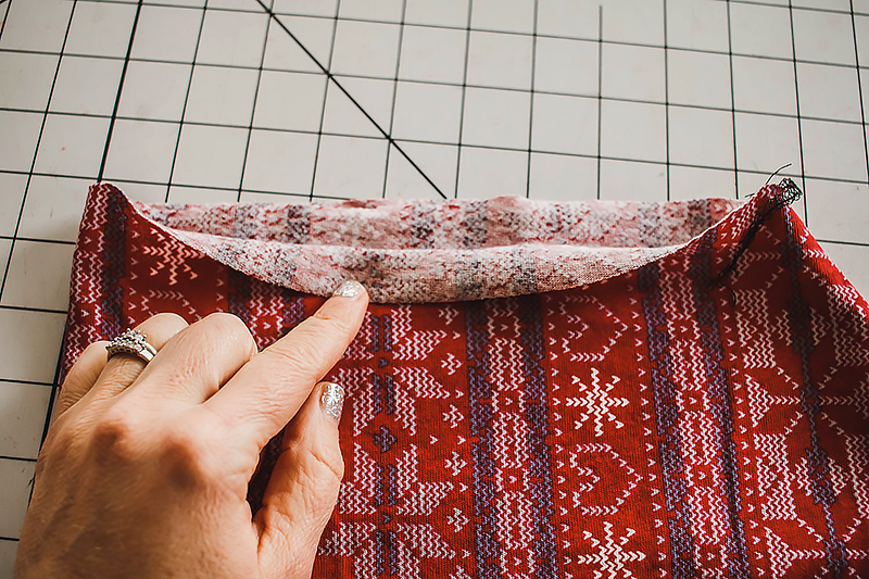 After you sew this edge, pull the two pieces apart, then tuck one inside the other.
