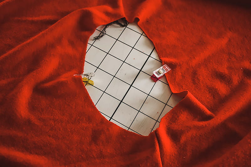 With the right sides of the cowl fabric together, sew the curved long edge of each of the two parts.