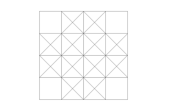 7. Join row 1 to row 2, then row 3 to 4. Finally, seam row 2 to row 3 creating the 16-block square. Press row seams open to reduce bulk.