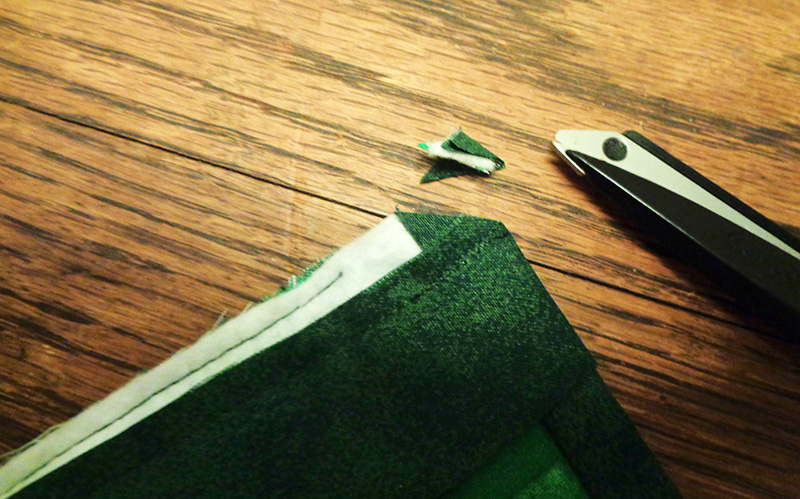 35. Trim horizontal quilt edge to a scant ½” from the seam line as was done on the sides.