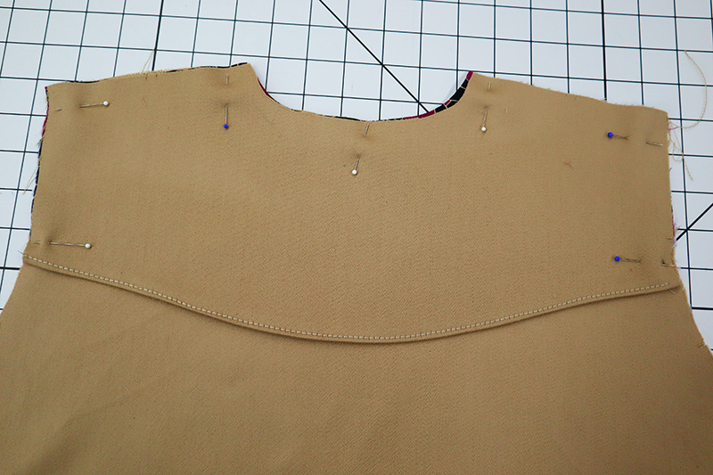 When sewing with cashmere or wool, it’s very important to pre-shrink your fabric. You can do this by steam pressing the fabric with your iron (hold the iron just above the fabric and press the steam button) or you can bring the fabric to the dry cleaners. It really depends on how you want to care for your garment – however you want to care for your garment, do the same in pre-shrinking. If you are lining the jacket, do the same with the lining.