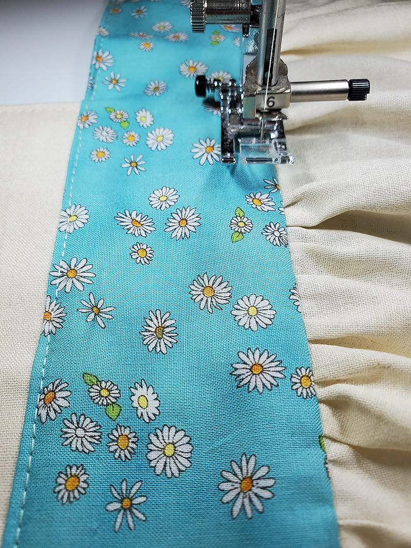 43. Topstitch 1/8” on the other side of the waistband above the gathered skirt. [Picture 101]