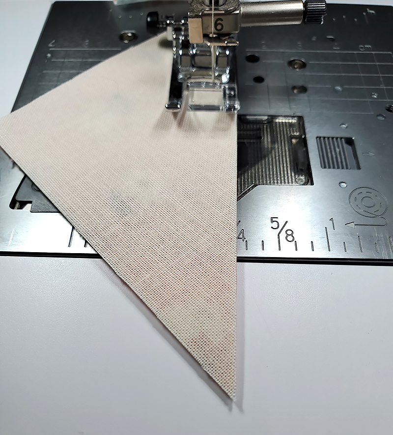 1. Pair a triangle “G” with a triangle “V” RST and sew down the longest side. Repeat with the other “G” and “V” units.