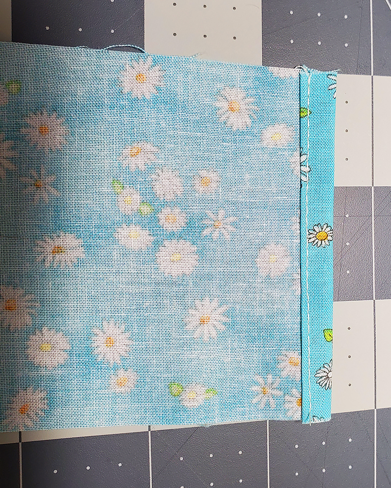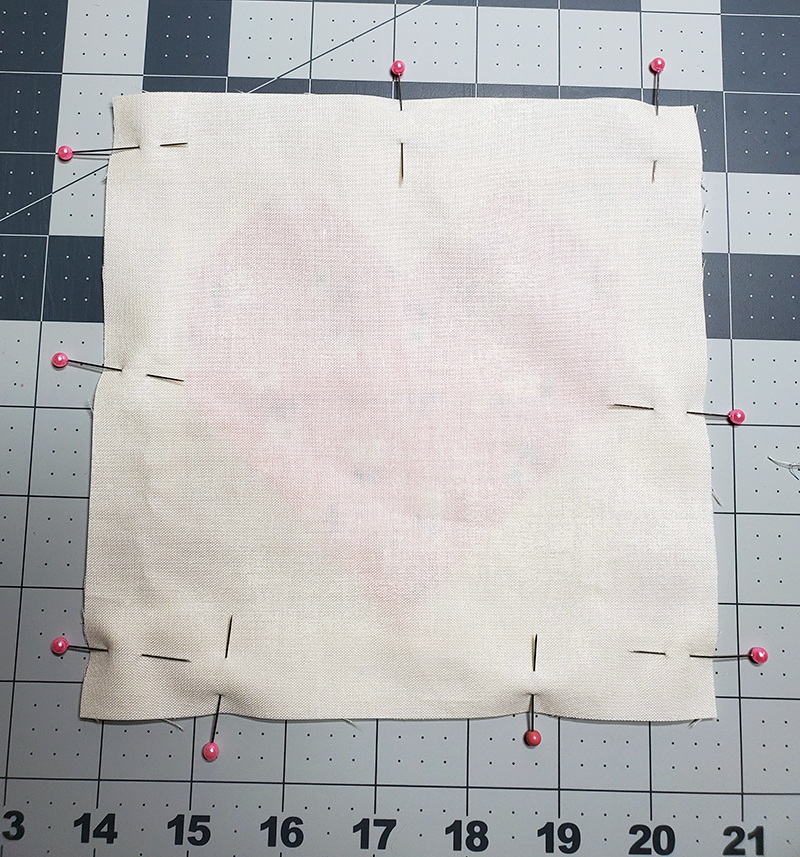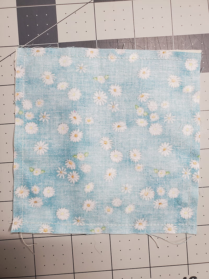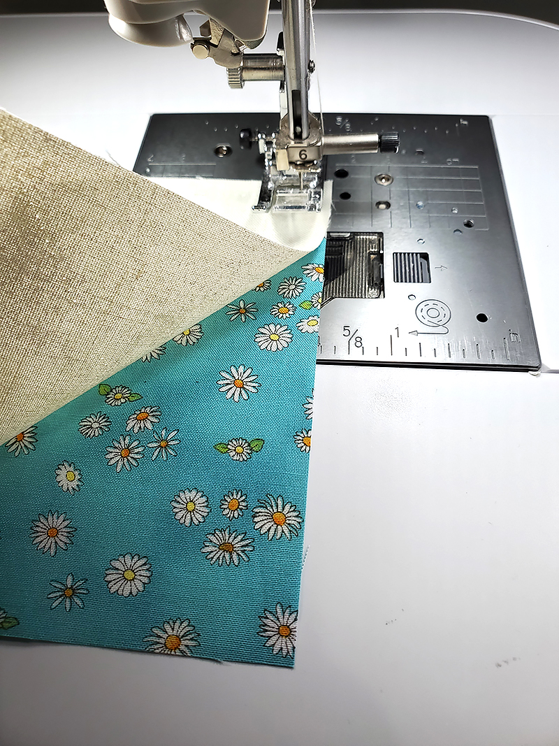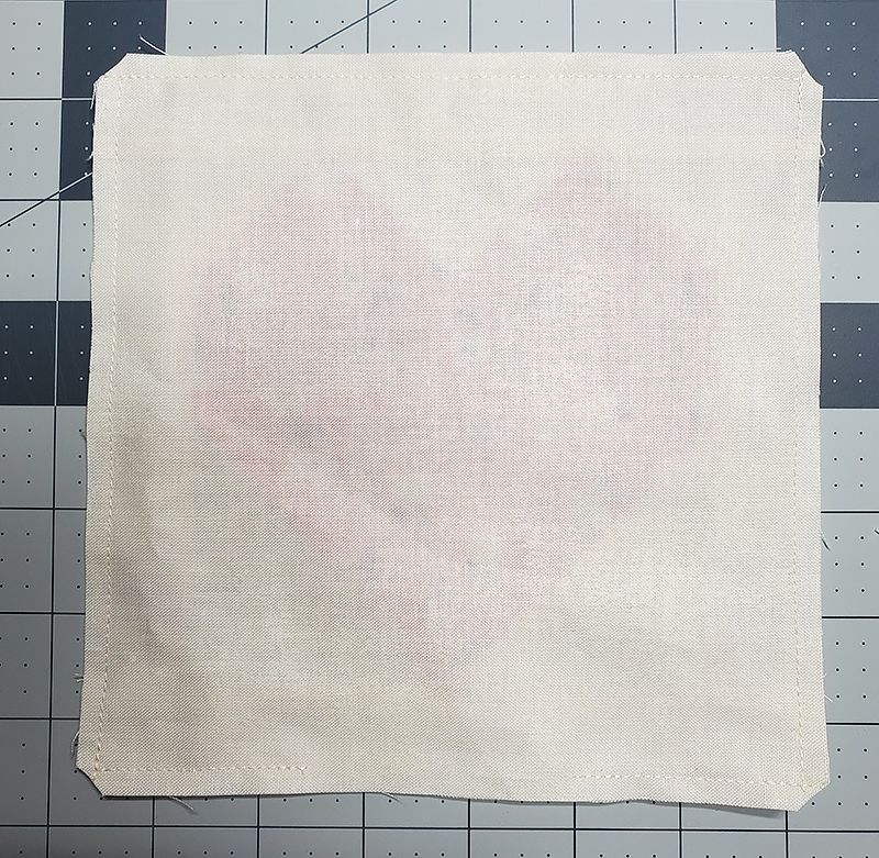 3. Starting at the bottom of the block, stitch all the way around the outside, backstitching at the corners and leaving approximately 2” open at the bottom.