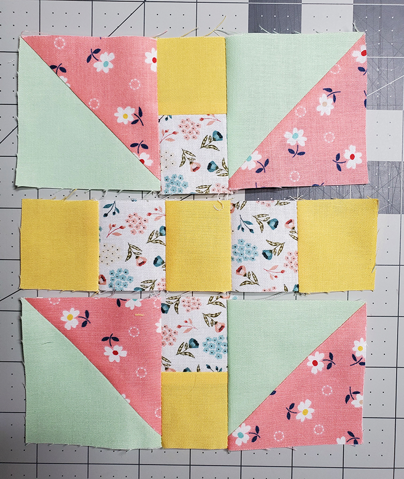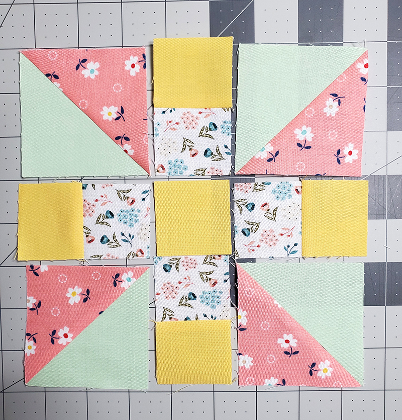 11. Lay out your block one more time, making sure your pinwheel is turning in the right direction.