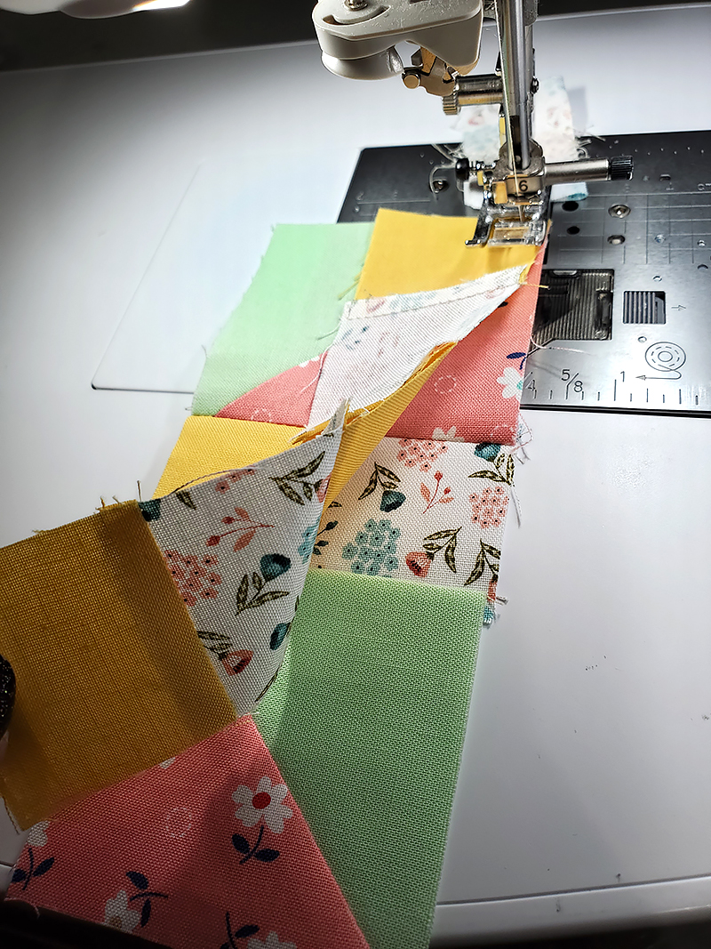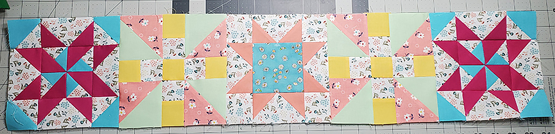 1. Stitch the FIVE quilt blocks pieced above in an order pleasing to your eye.