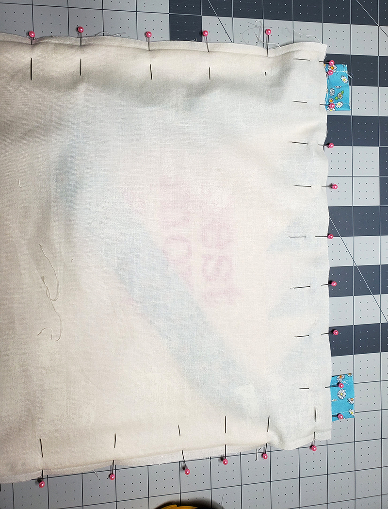 12. Pin all the way across long edge.