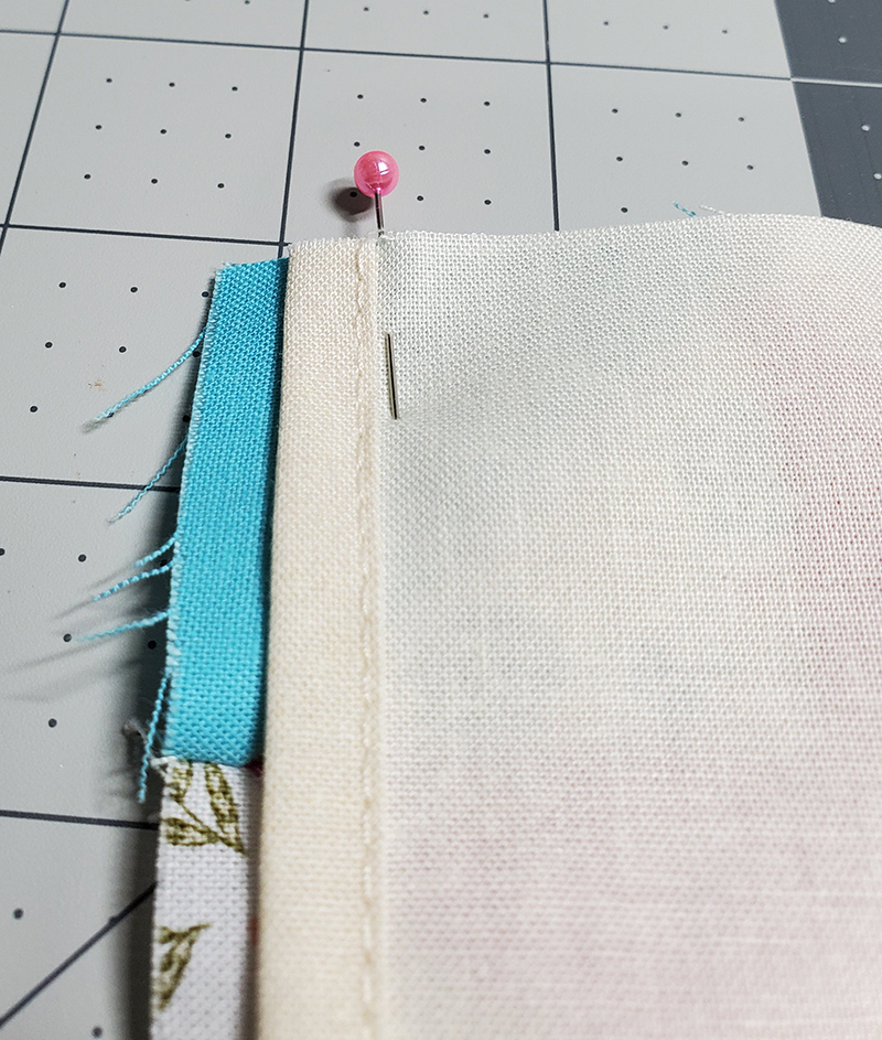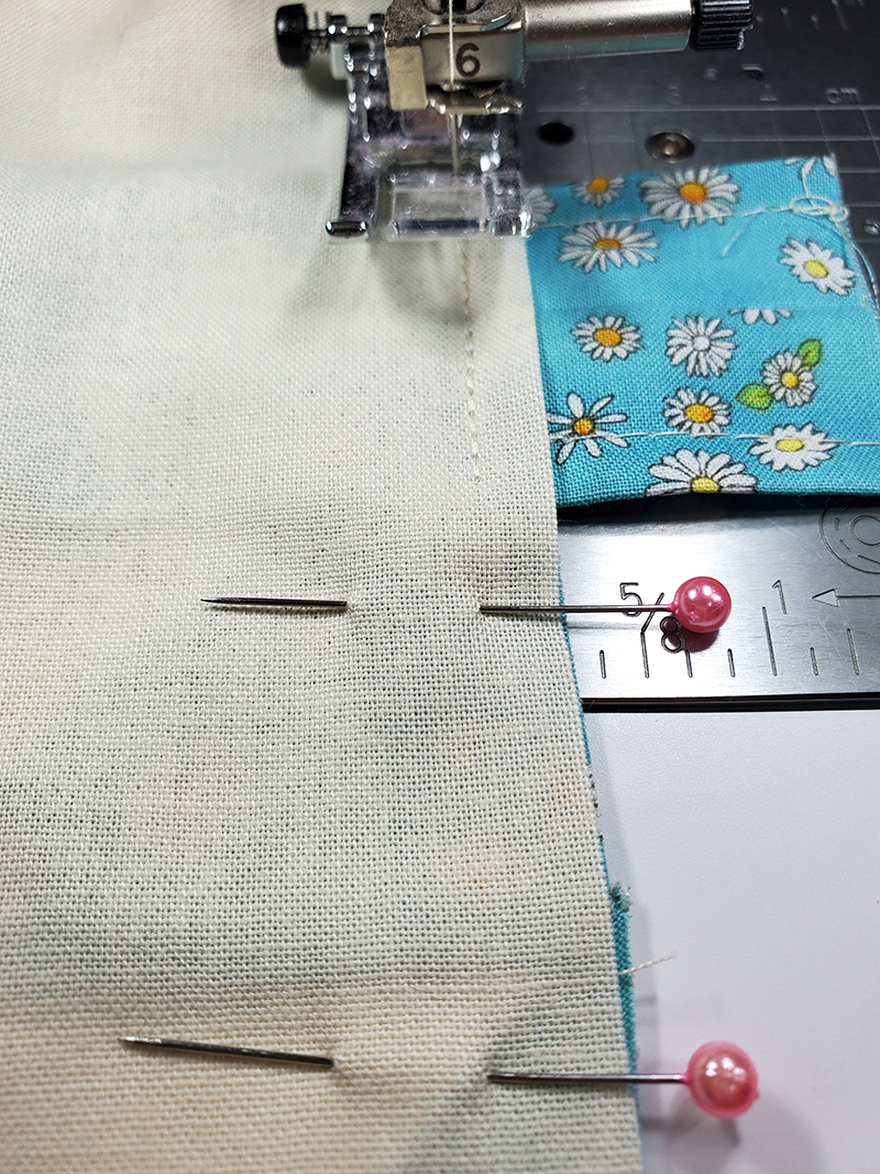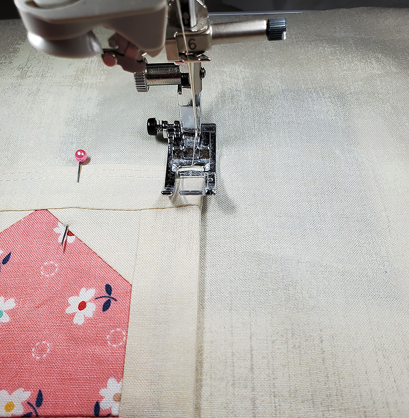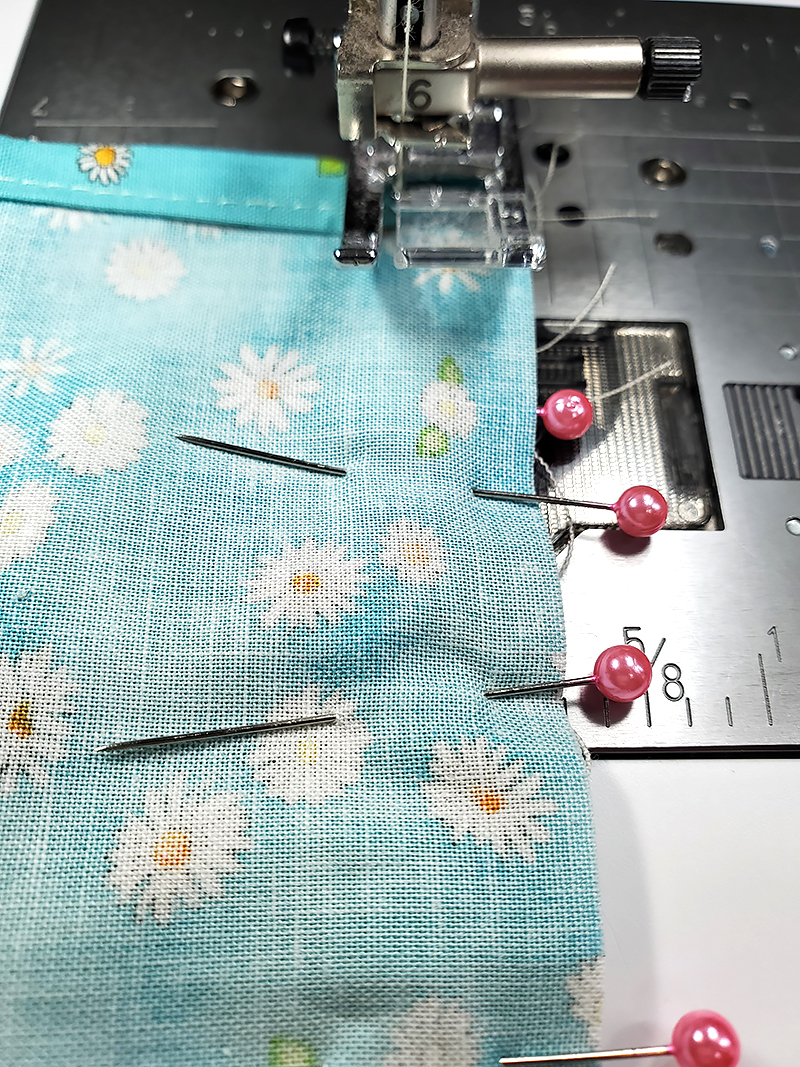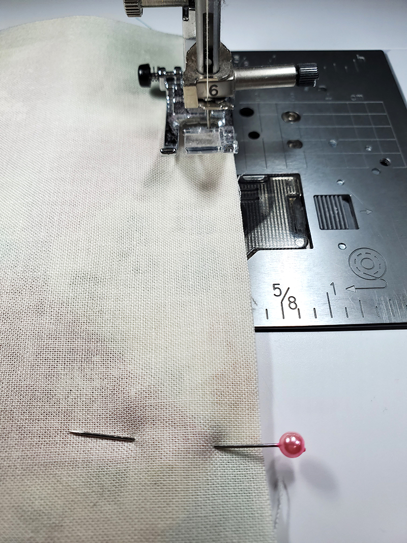 14. Stitch along the pinned edge, removing the pins as you sew.